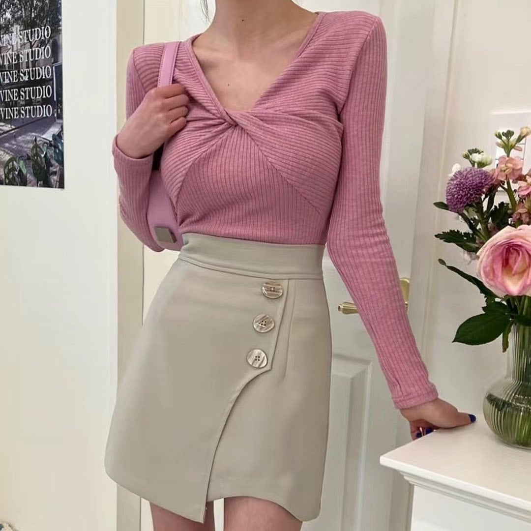 22YR0122 小扭結暗直紋 top