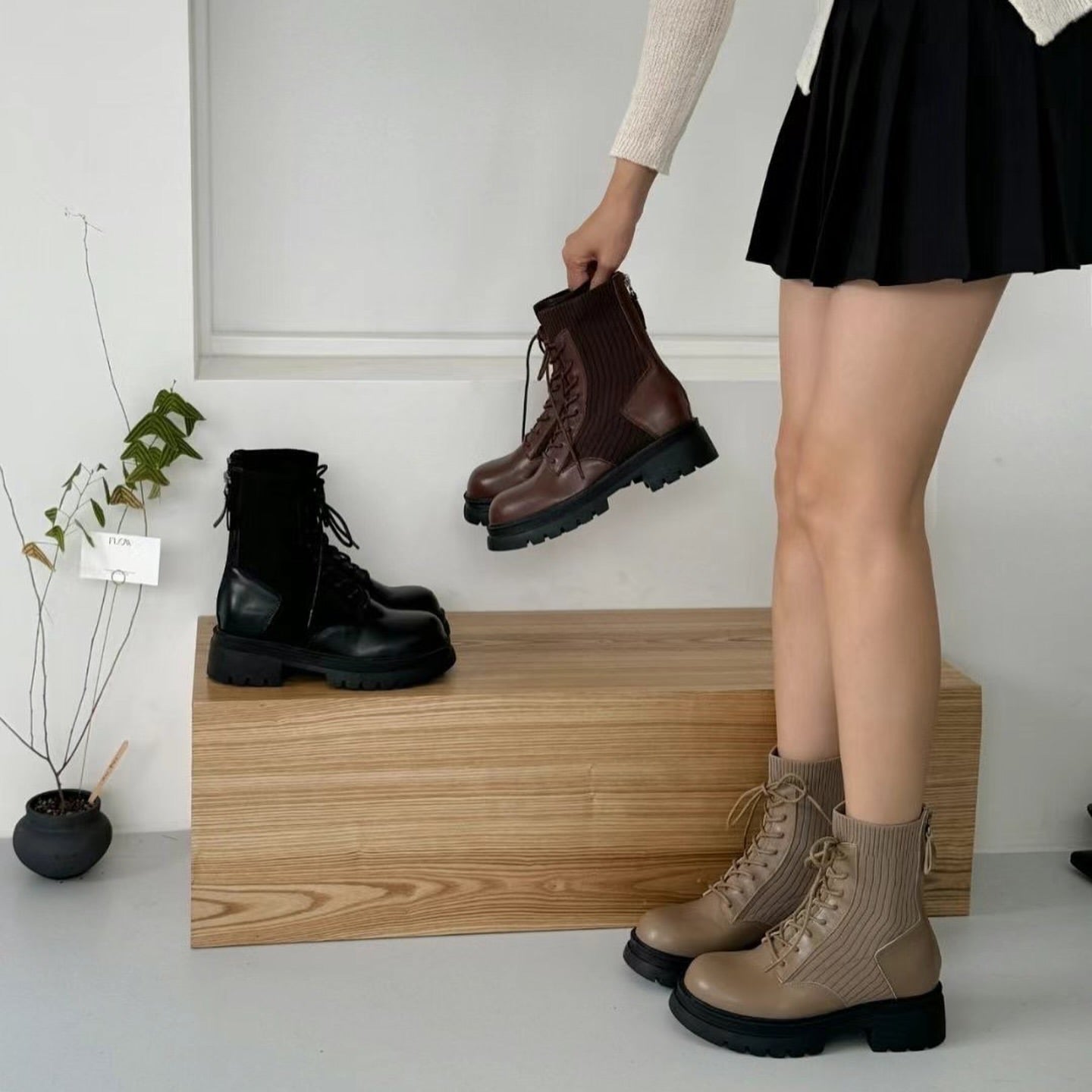 24YR2128 拼皮橡筋boot 5cm